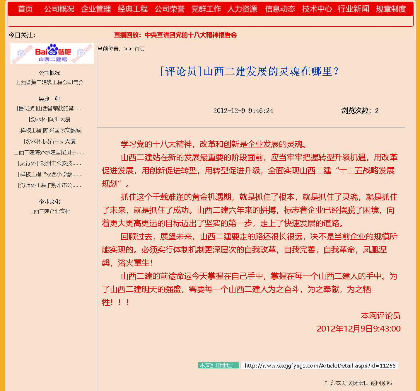 這是十二年前我對山西二建未來發展的三百字文章。