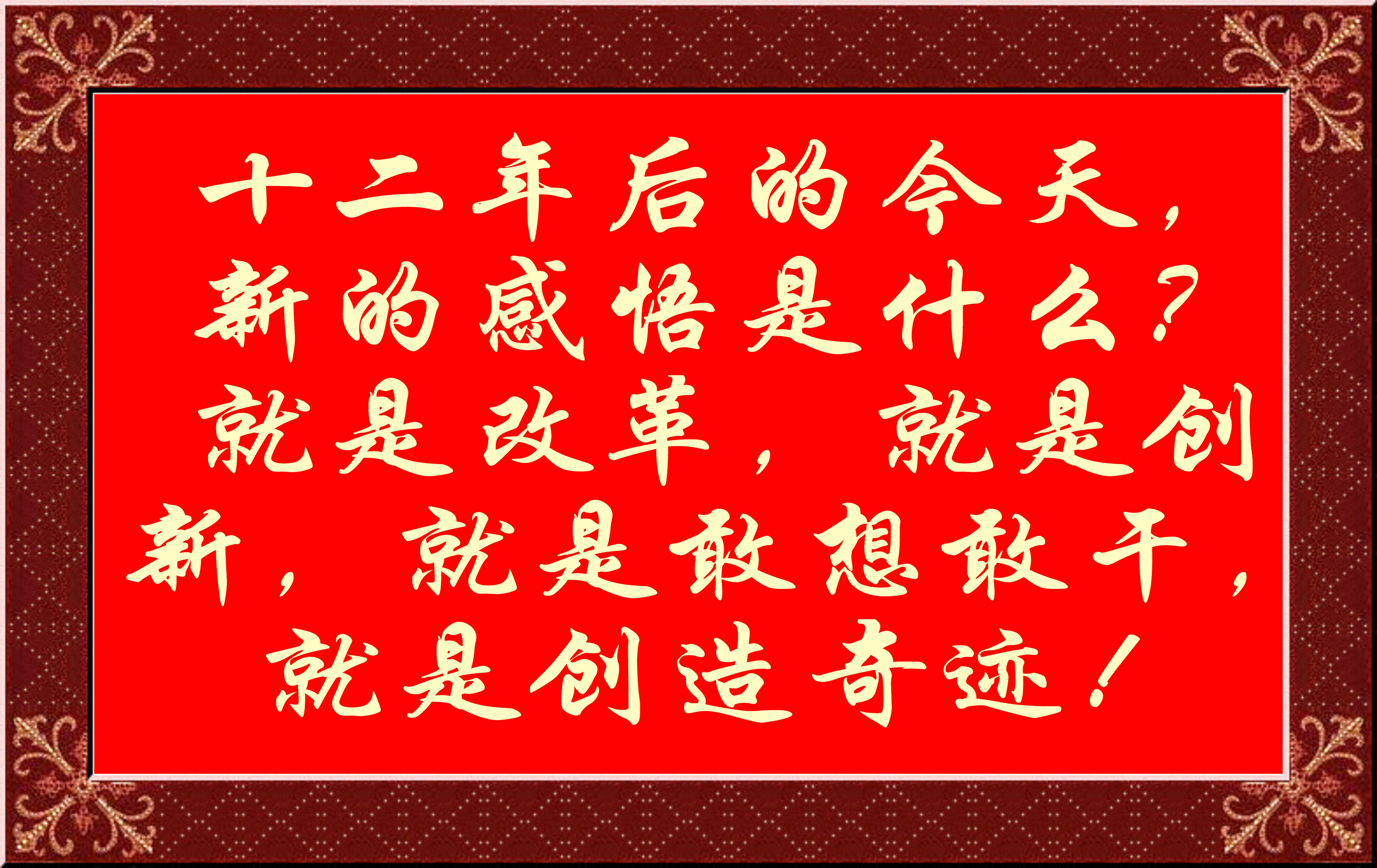 十二年后的今天,新的感悟是什么?就是改革,就是創新,就是敢想敢干,就是創造奇跡!