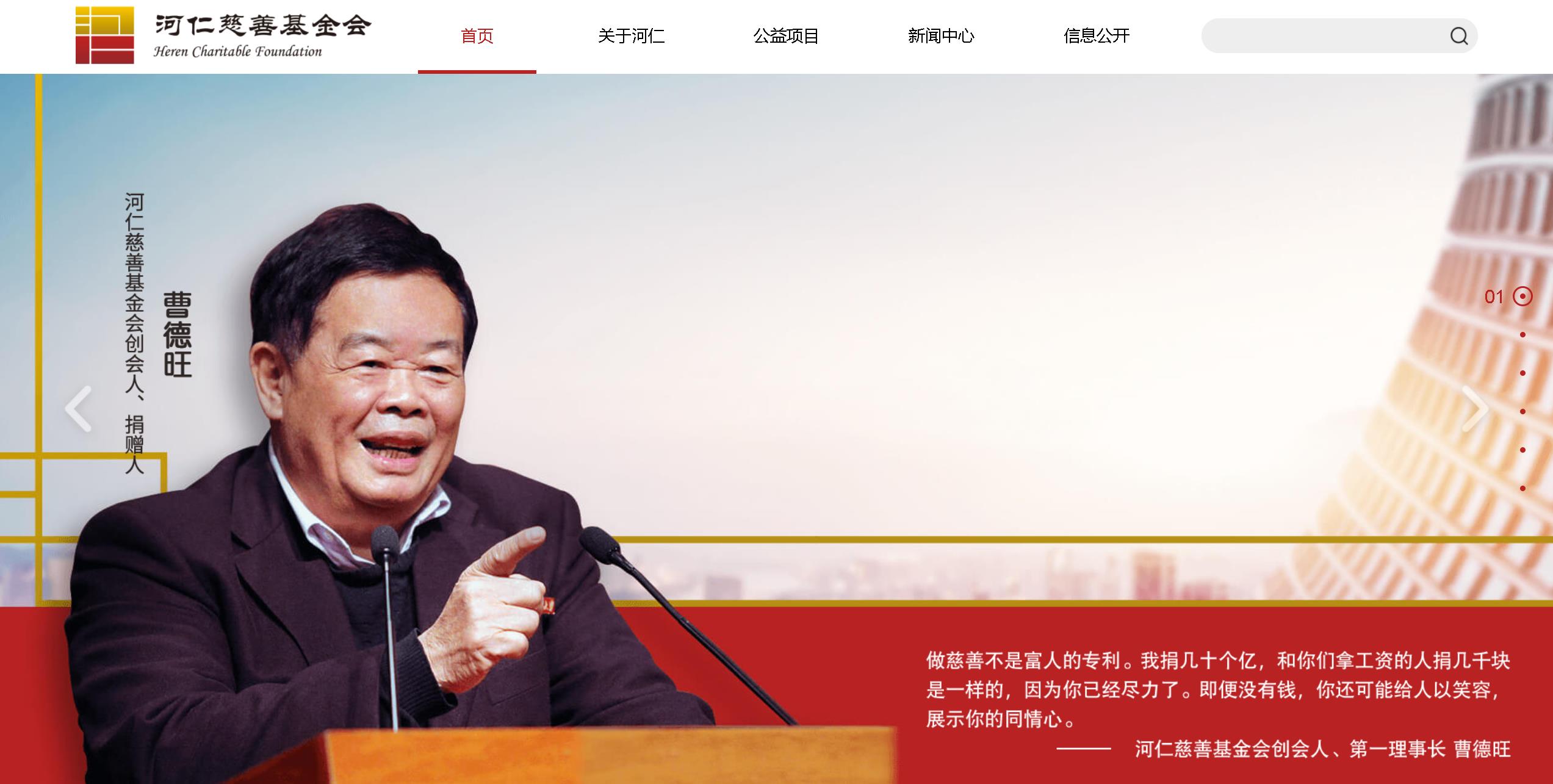 河仁慈善基金會網站介紹:河仁慈善基金會是由福耀玻璃工業集團股份有限公司董事局主席曹德旺先生捐資創立。