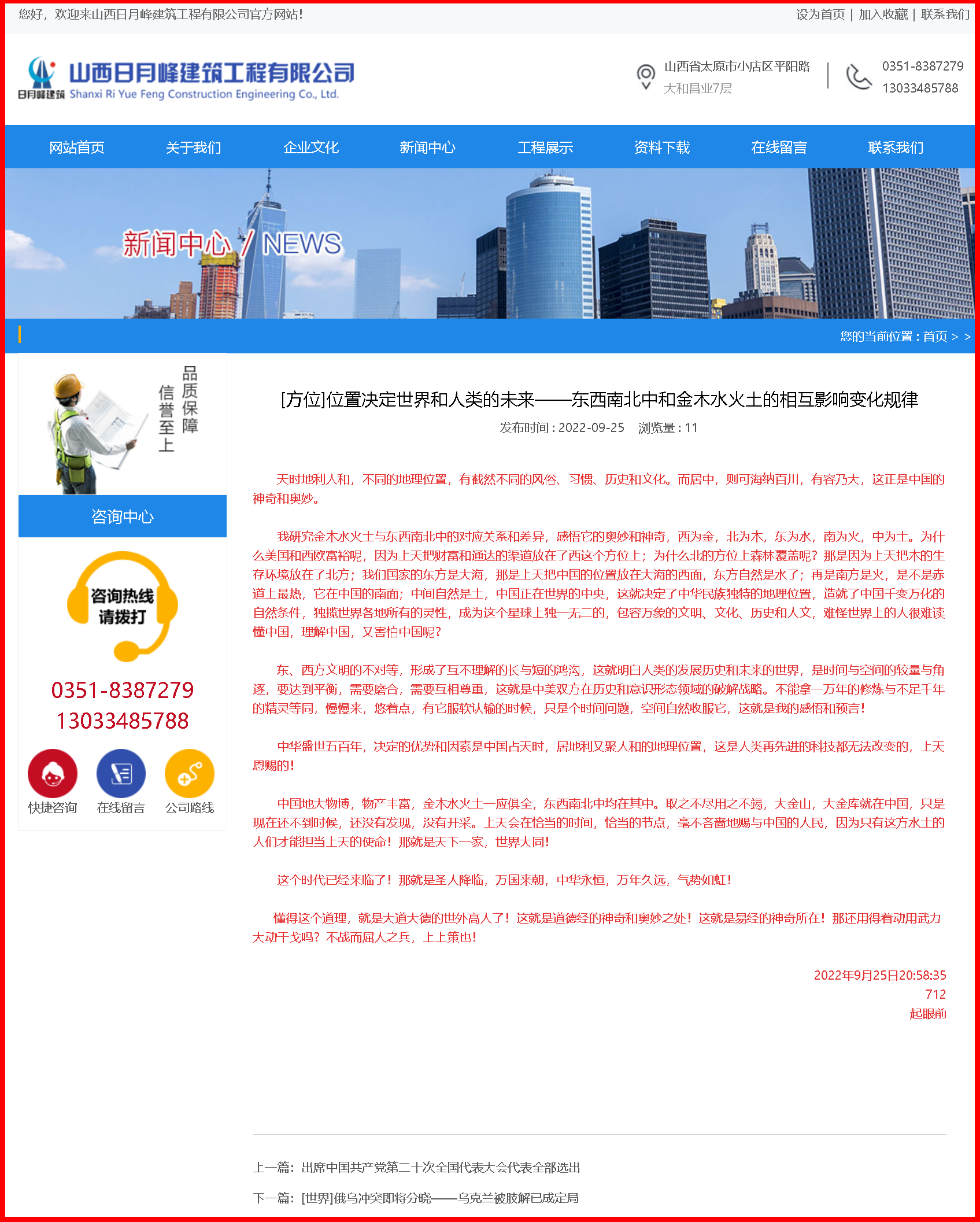 我研究金木水火土與東西南北中的對應關系和差異,感悟它的奧妙和神奇,西為金,北為木,東為水,南為火,中為土。為什么美國和西歐富裕呢,因為上天把財富和通達的渠道放在了西這個方位上;為什么北的方位上森林覆蓋呢?那是因為上天把木的生存環境放在了北方;我們國家的東方是大海,那是上天把中國的位置放在大海的西面,東方自然是水了;再是南方是火,是不是赤道上最熱,它在中國的南面;中間自然是土,中國正在世界的中央,這就決定了中華民族獨特的地理位置,造就了中國千變萬化的自然條件,獨攬世界各地所有的靈性,成為這個星球上獨一無二的,包容萬象的文明、文化、歷史和人文,難怪世界上的人很難讀懂中國,理解中國,又害怕中國呢?