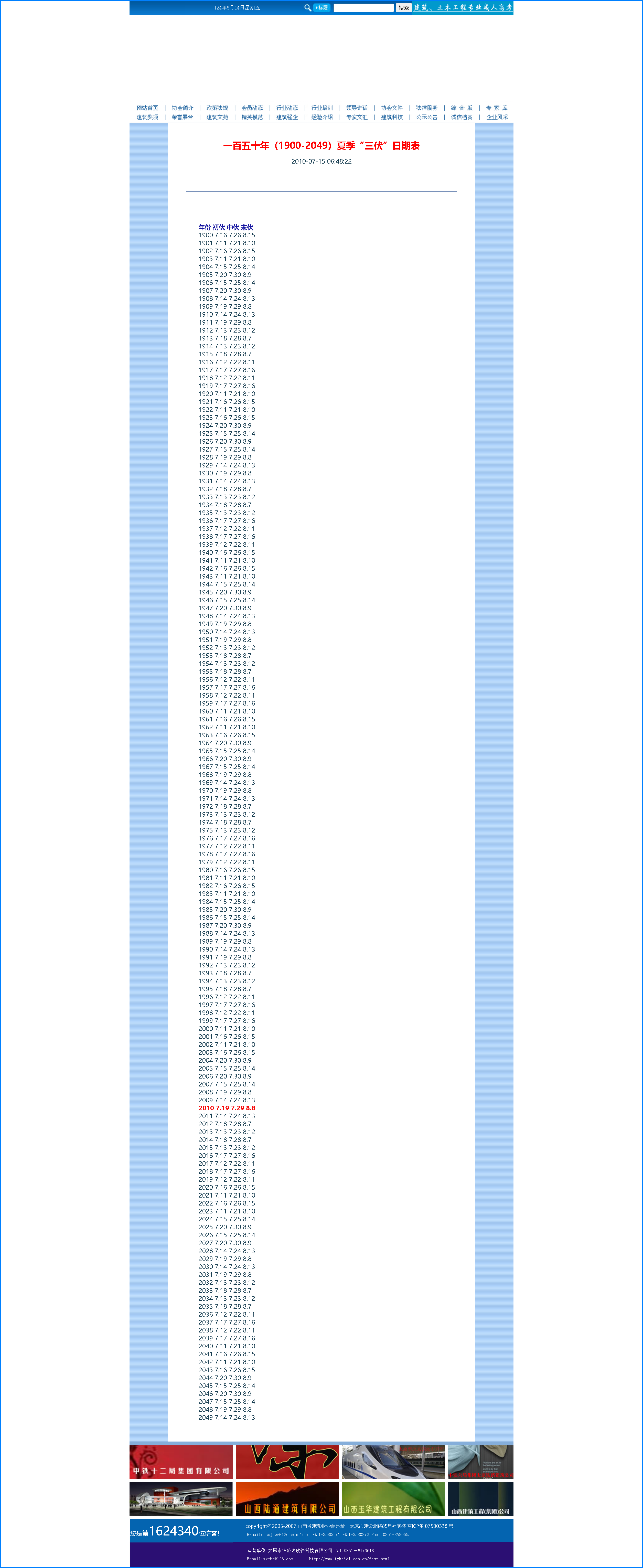 1900-2049一百五十年三伏日期表