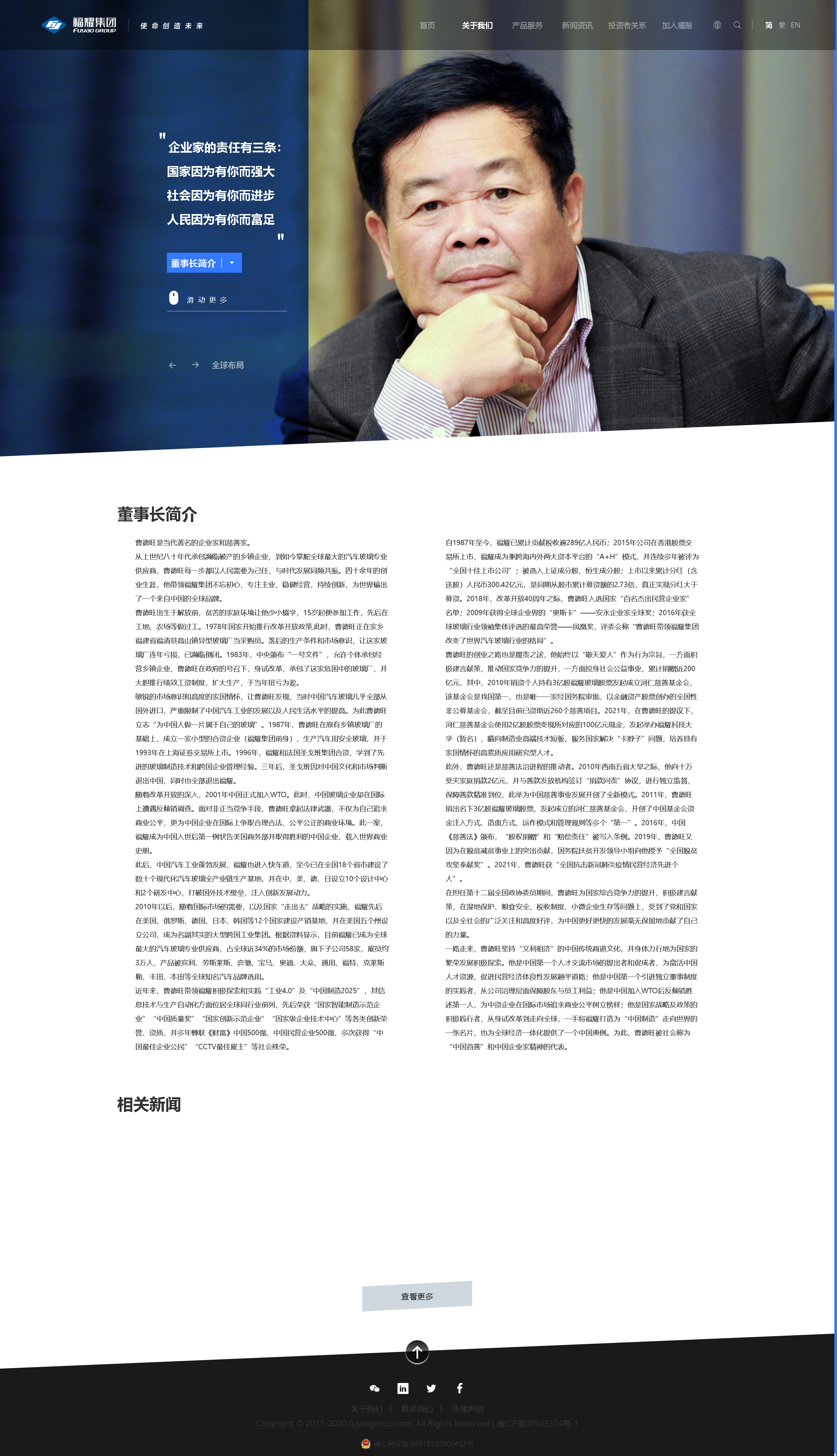 感悟曹德旺文化理念——企業家的責任有三條: 國家因為有你而強大 社會因為有你而進步 人民因為有你而富足