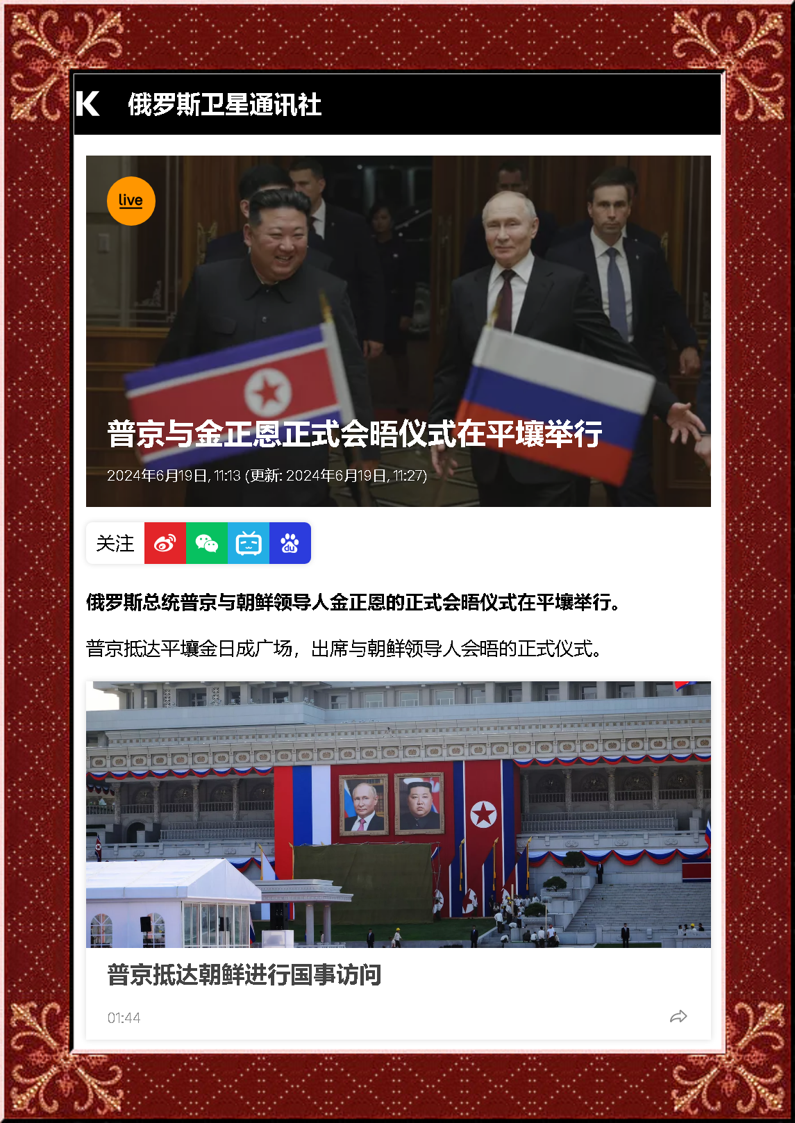 我祝愿金正恩同志身體健康,祝愿所有友好的朝鮮人民在和平與發(fā)展之路上取得巨大的成功。(文森翻譯|2024年6月18日)
