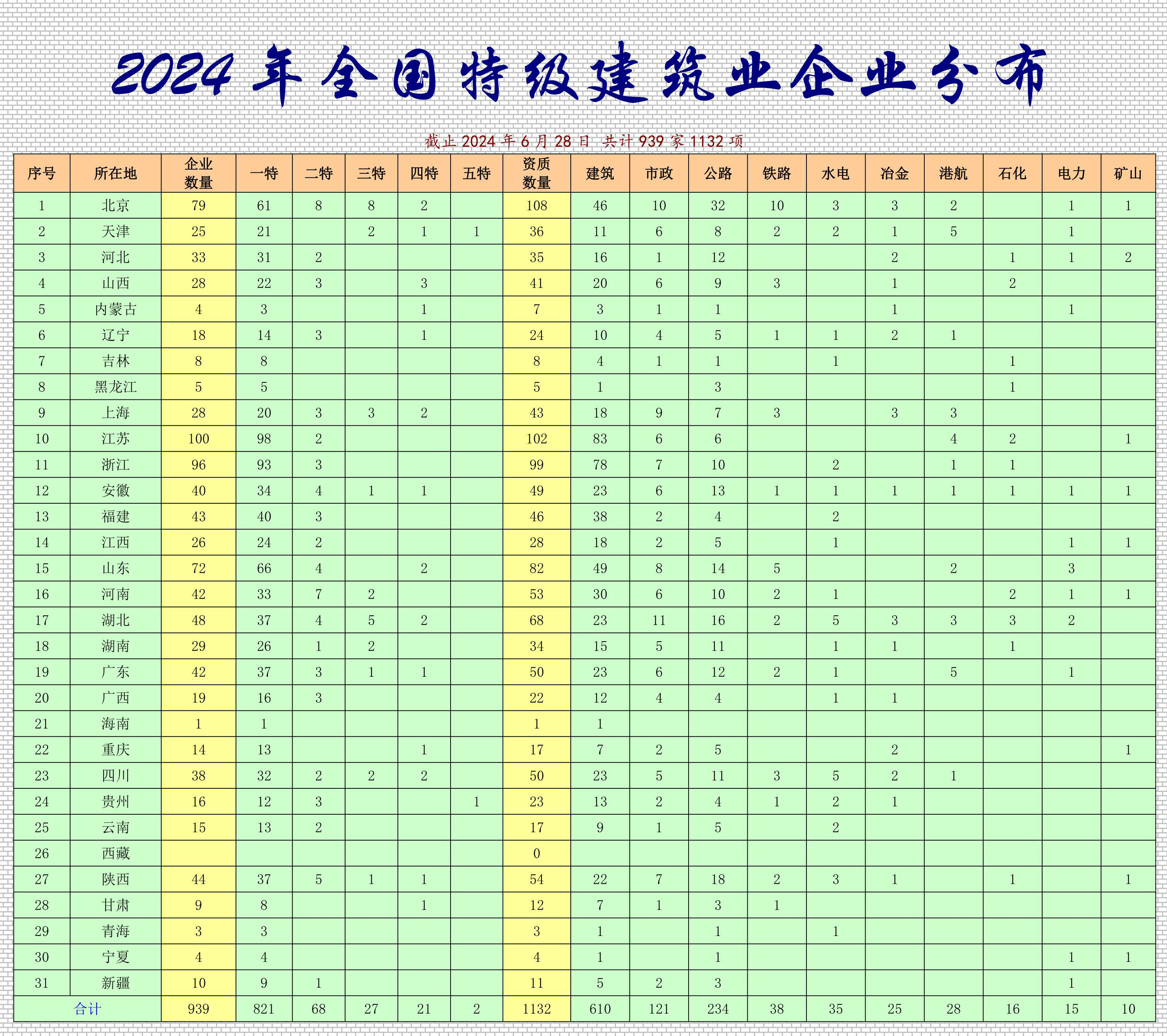 全國建筑業企業特級資質有多少家,它們分布在哪里?帶你看看金字塔尖的939家公司都是誰?